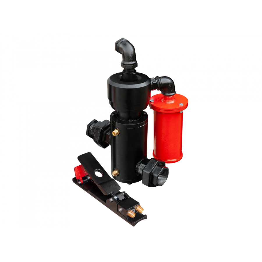 позволяет оператору на расстоянии включать и отключать подачу сжатого воздуха на абразивоструйную установку. Дистанционное управление применяется для управления подачей сжатого воздуха в аппарат с одновременным управлением функцией стравливания воздуха из аппарата. Стравливание воздуха из бака аппарата происходит через глушитель, который входит в комплект поставки.